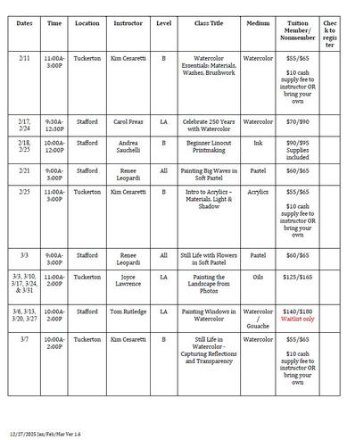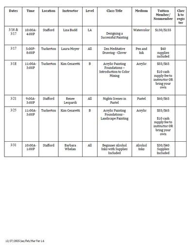 CLASSES - Stafford & Tuckerton Galleries