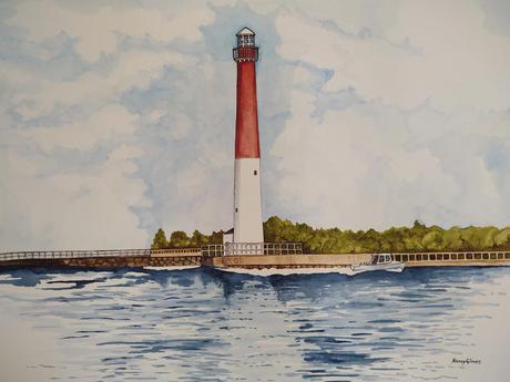 'Barnegat Lighthouse' watercolor by Nancy Glines